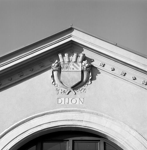 Le bâtiment-voyageurs : bâtiment latéral ouest, écusson aux armes de DijonImmatriculation