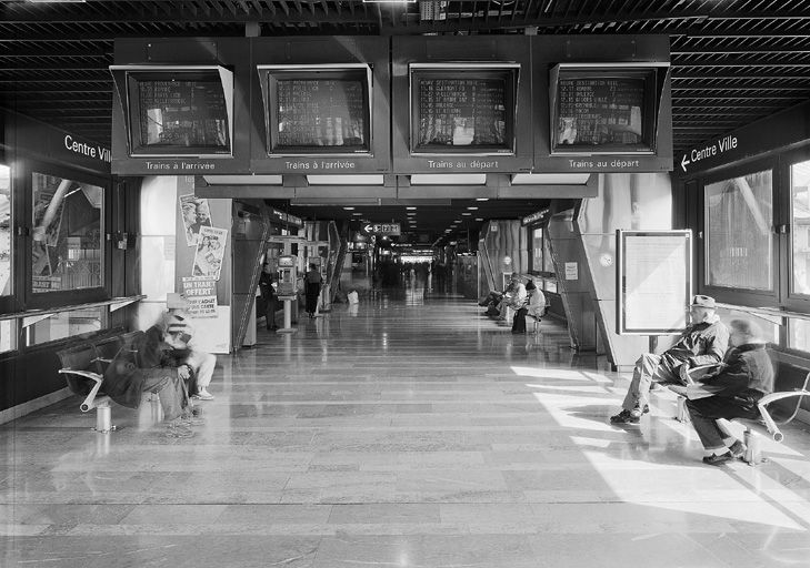 Premier étage carré : le mail, côté cours Charlemagne, permettant d'accéder aux voies, à la salle des pas perdus du bâtiment-voyageurs, puis au centre d'échangesImmatriculation