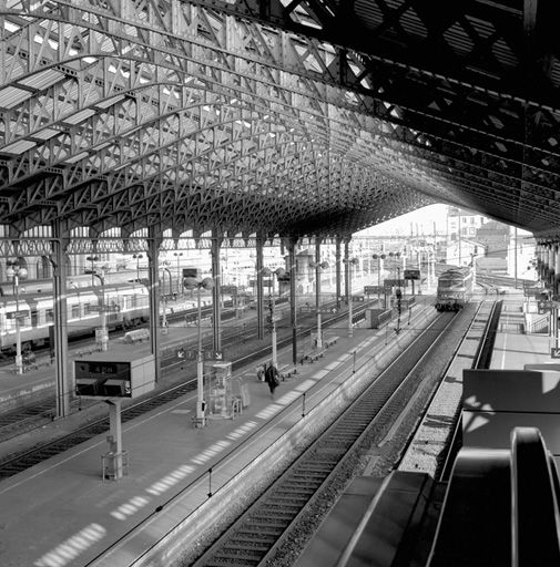 Le volume défini par la halle Saint-Etienne vers l'est, depuis le haut d'un escalator desservant les quais depuis le mailImmatriculation