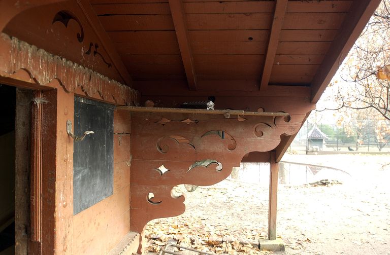 L'oisellerie, élévation antérieure : détail de l'avant-toitImmatriculation