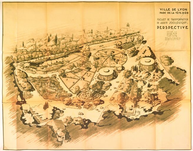 Projet de transformation du jardin zoologique, perspective, Robert Jaine architecte, 1958 ?Immatriculation