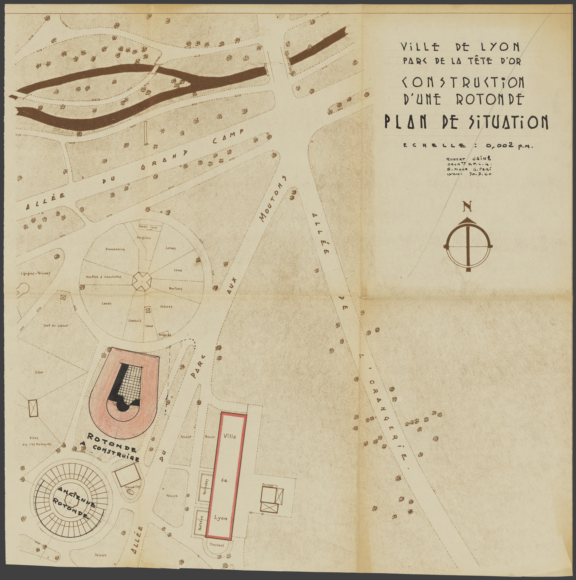Ville de Lyon. Parc de la Tête d'Or. Construction d'une rotonde. Plan de situation, par Robert Jaine, architecte DPLG, Lyon, 30 juillet 1960 (AC Lyon : 421 WP 27, 1960-1964)