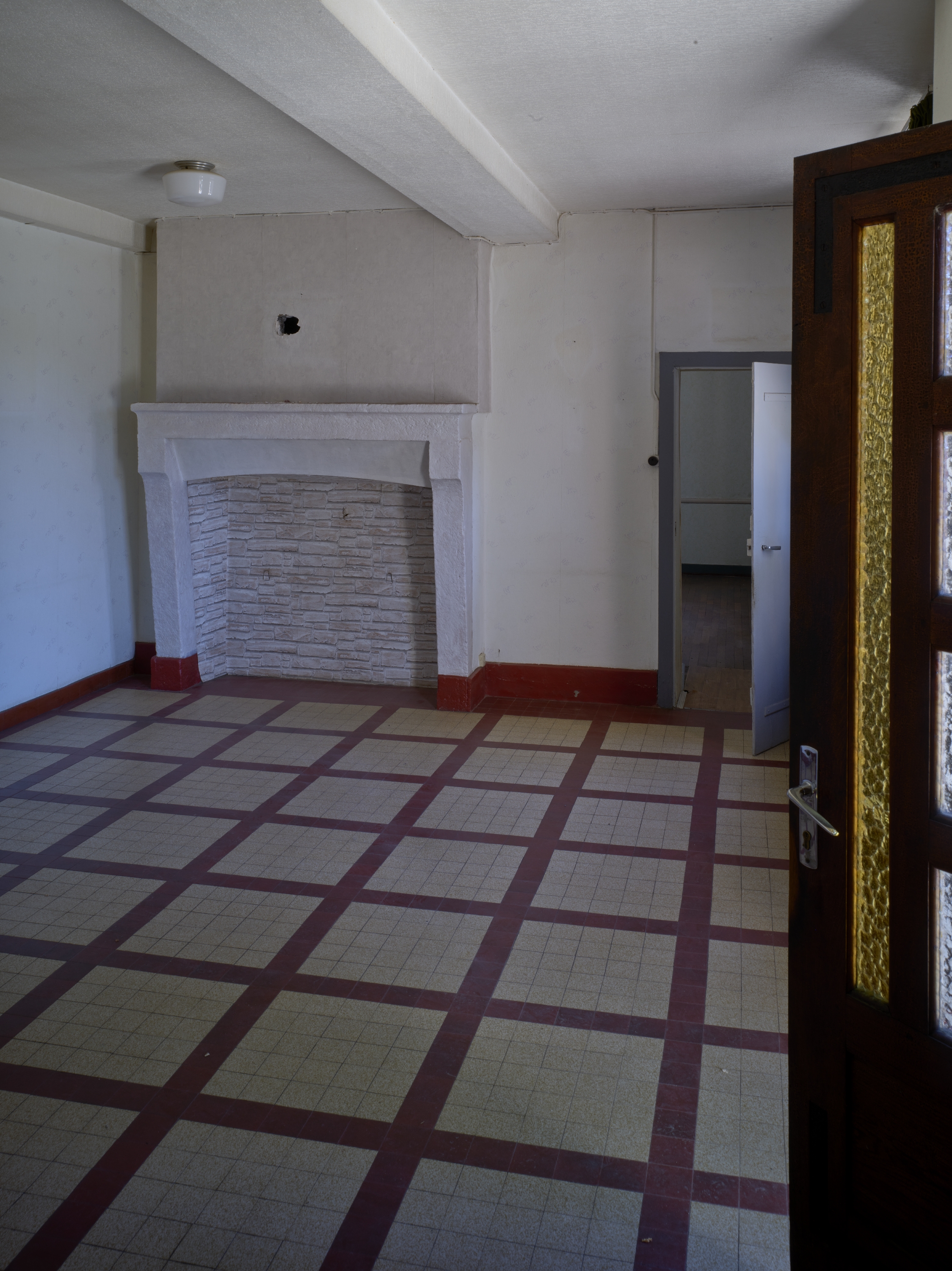 Logis de ferme : salle principale (sur le bord droit du cliché, porte d'entrée principale du logis).Immatriculation