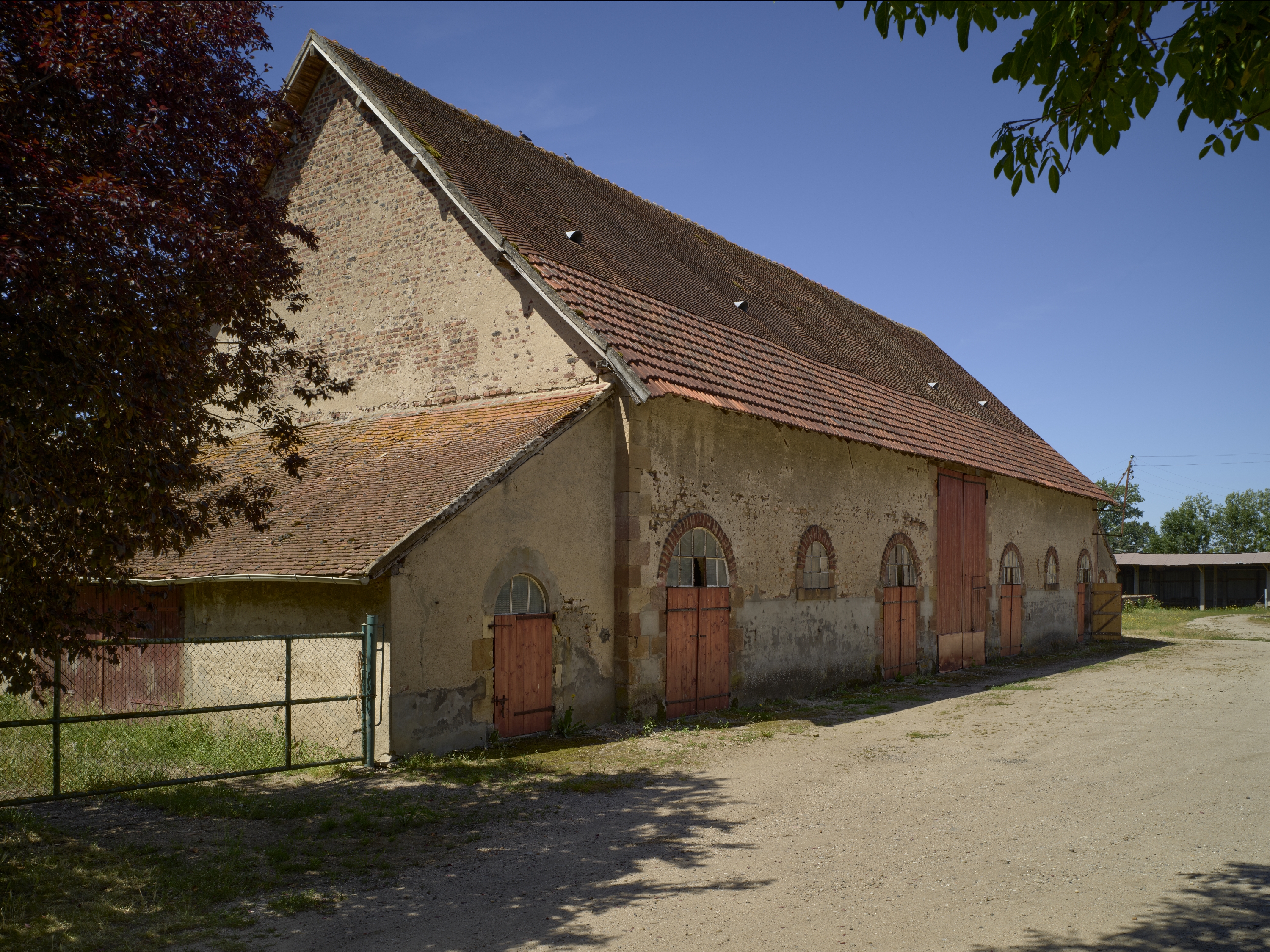 Grange-étable située au sud de la cour principale. Construite en 1866 d'après le dernier propriétaire. Porte charretière au centre, portes d'entrée des étables doubles de part et d'autre. À gauche de la photo (à l'est), étable ouverte adossée.Immatriculation