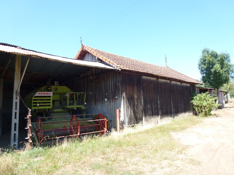 Bâtiment le plus à l'ouest de la ferme : remise, et hangar avec moissonneuse batteuse. Au fond : clapiers. (Photo chercheure.)Immatriculation