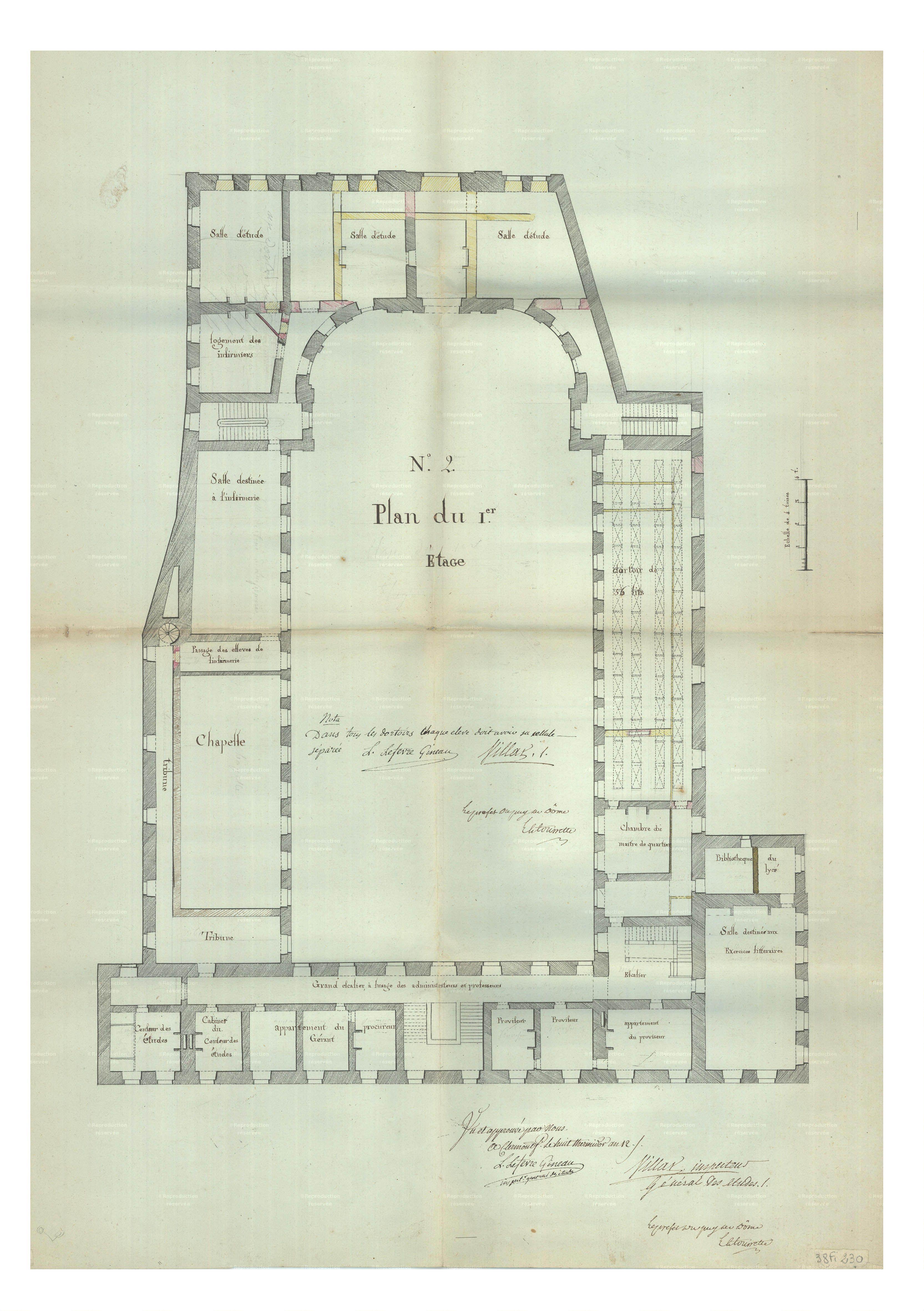 Projet d'aménagement de l'école centrale en lycée par Cournon, 1804 : 1er étage (AD Puy-de-Dôme, 38 Fi 229)Immatriculation