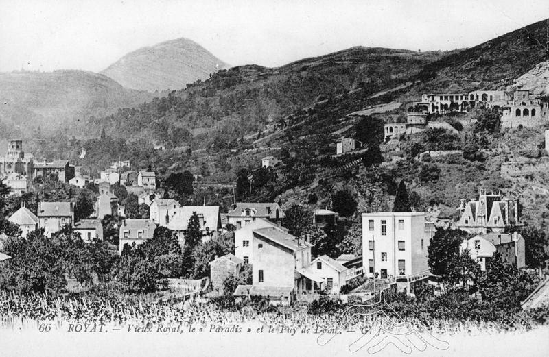 AD du Puy-de-Dôme, fonds iconographique, 517 Fi 273, 'Vieux Royat, le Paradis et le Puy de Dôme', Ed. GJ., Collection Alexandre Petit.