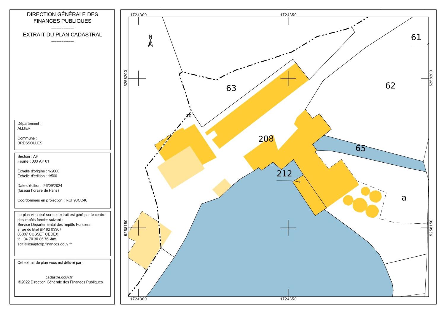 Le Moulin : extrait du plan cadastral (2021). Bressolles AP 01.Immatriculation